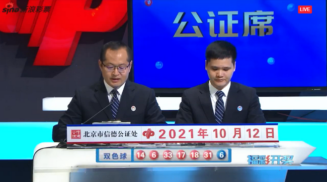 北京时间2021年10月12日,福彩双色球第21116期开奖,以下是详细开奖流程: