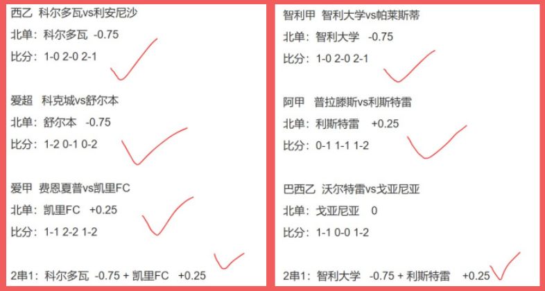 足球收世预赛友谊赛2串1,单场9中8附送3个2串1全红!