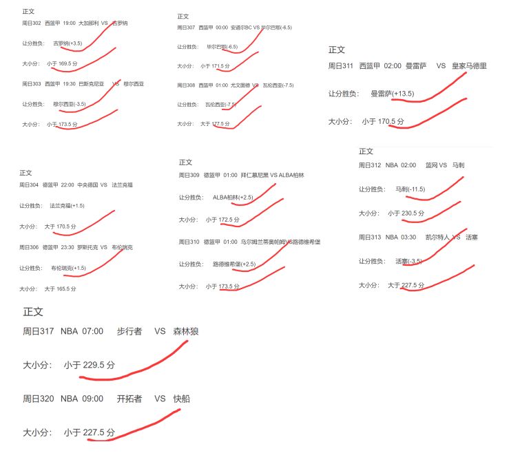 3. 西篮甲+德蓝甲5组9场全红--其中7场让分+大小分都命中!NBA命中2组: