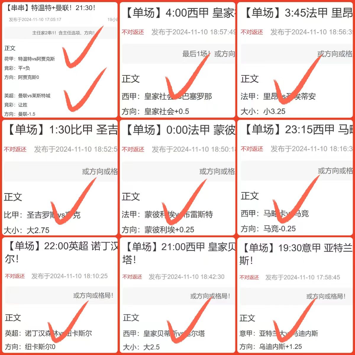 私厨方面,【串串】+【单场】合计取得13中10,其中【串串】阿贾克斯+曼联的搭配顺利吃到了肉!【单场】同样状态火热,取得11中8,从首发乌迪内斯开始到后半夜的比赛,几乎没有遇到太多障碍,私厨整体13中10,周日算是完美结束!